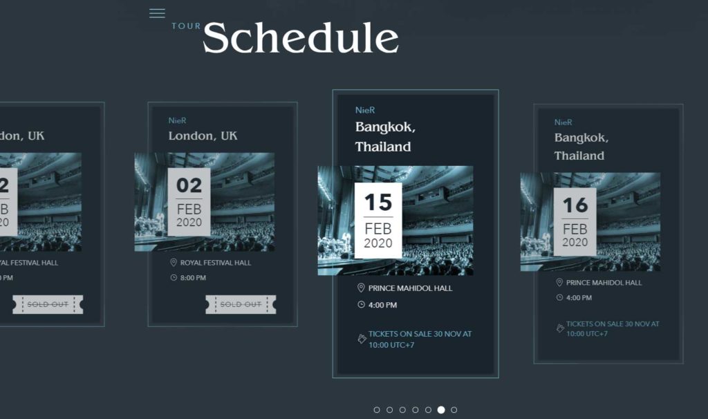 แหล่งข่าวนี้มาจาก Twittister ของ NieR: Automata ซึ่งประกาศผ่านหน้า Feed ว่าคอนเสริทครั้งนี้จะจัดขึ้นที่ Chicago-USA, Los Angeles, London-UK, และ Bangkok-Thailand เปิดแสดงแค่ 4 เมืองนี้เท่านั้น และหนึ่งในนั้นคือ Bangkok โอ้โหแอดมินรู้สึกถึงความสำคัญที่คอนเสิร์ตครั้งนี้มอบให้กับชาวไทยเลยนะครับเนี่ย ^^