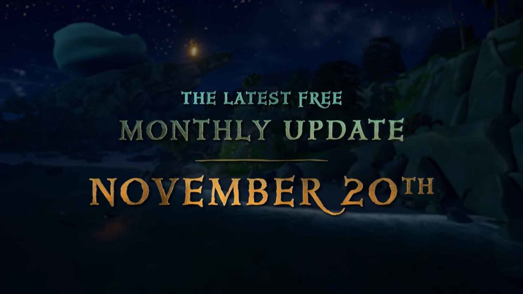 Sea of Thieves อัปเดตเนื้อหารายเดือนฟรี จะมาถึงในวันที่ 20 พฤศจิกายน ในชื่อตอนว่า The Seabound Soul ซึ่งจะมีการปรับปรุงระบบการให้ประสบการณ์, เพิ่มระบบชื่อเสียง, เพิ่มระบบ Arena,ของตกแต่งใหม่ๆ, Item ใหม่, และกระสุนปืนใหญ่แบบระเบิด, ระเบิดไฟ
