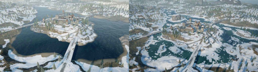 – ที่บริเวณใจกลางแผนที่ Vikendi ที่ Mount Kreznic แต่เดิมจะมีสภาพภูมิประเทศที่หลากหลายทำให้ยากต่อการเคลื่อนที่บนเขาที่ลาดชันนี้, จึงได้มีการปรับความสูงของภูเขาให้ต่ำลง